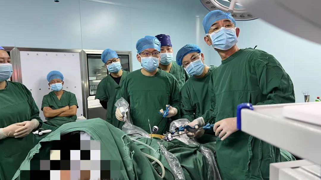 2024年11月,周先生被确诊为胃癌,辗转求医后选择在丹凤县医院治疗,恰逢南京市医疗帮扶专家组来丹搞学术活动,而胃肠外科资深专家施雪松教授就在其中。得知此事后,施雪松教授第一时间就到普外/胸外科查看病人,仔细查阅病人的术前各项检查,为患者精心制定手术方案。经充分的术前准备,施雪松教授为其成功实施了腹腔镜下根治性全胃切除术。