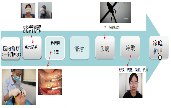(3)睑缘清洁:用生理盐水或专用的睑缘清洗液轻轻擦拭睑缘,清除睑缘的油脂、鳞屑和分泌物,保持睑板腺开口通畅。