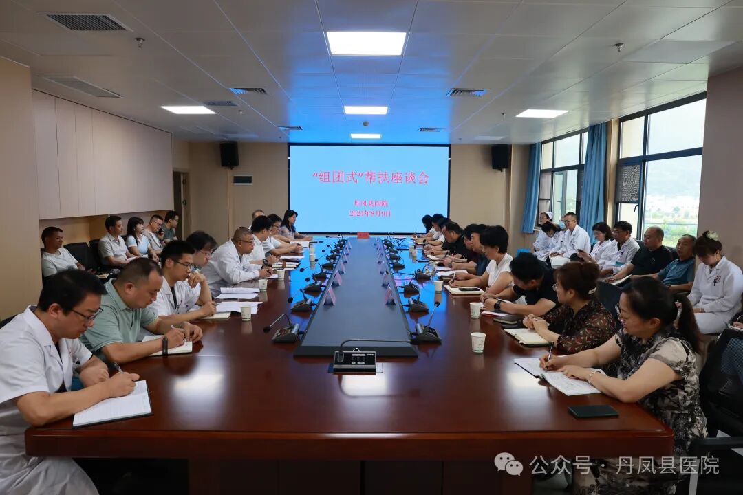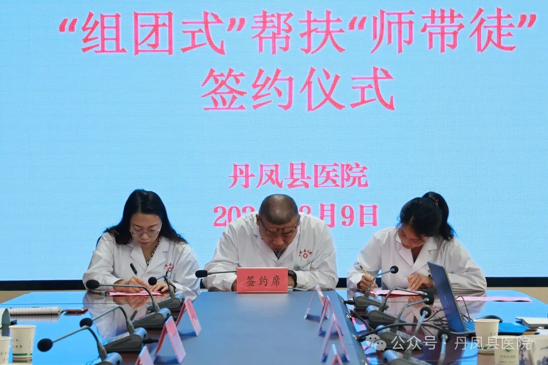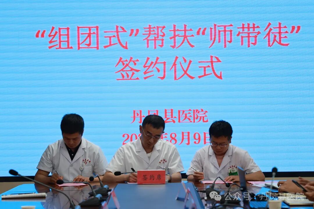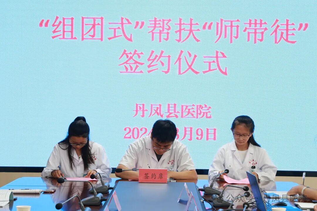 为深入推进“组团式”帮扶工作走细走实,充分发挥帮扶专家的专科优势,促进医疗资源深度整合与共享,8月9日上午,丹凤县医院召开了“组团式”帮扶座谈会暨“师带徒”签约仪式。院领导班子成员、帮扶专家、职能部门负责、受援科室主任、护士长以及“师带徒”相关人员参加会议,会议由院党委副书记、常务副院长樊书满主持。