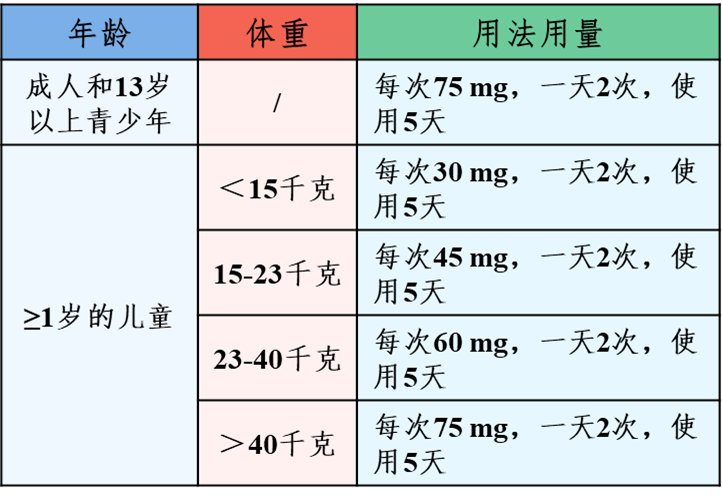 出现流感症状之后尽快开始给药。尚无在出现症状 48 小时后才开始给药的临床有效性数据;
