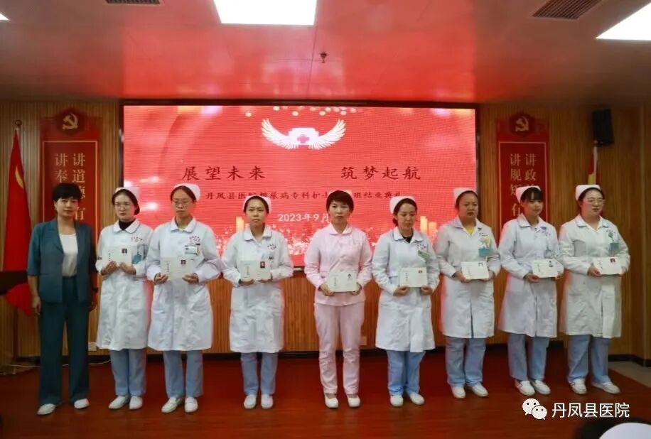 为提升医院糖尿病专科护理水平,促进医院护理质量全面发展,更好的服务于患者,2023年8月14日到9月14日,丹凤县医院开展了为期1个月的院内糖尿病专科护士培训,培训包括理论知识及临床实践技能培训,32名来自全院各护理单元的护士参加了培训并顺利结业。