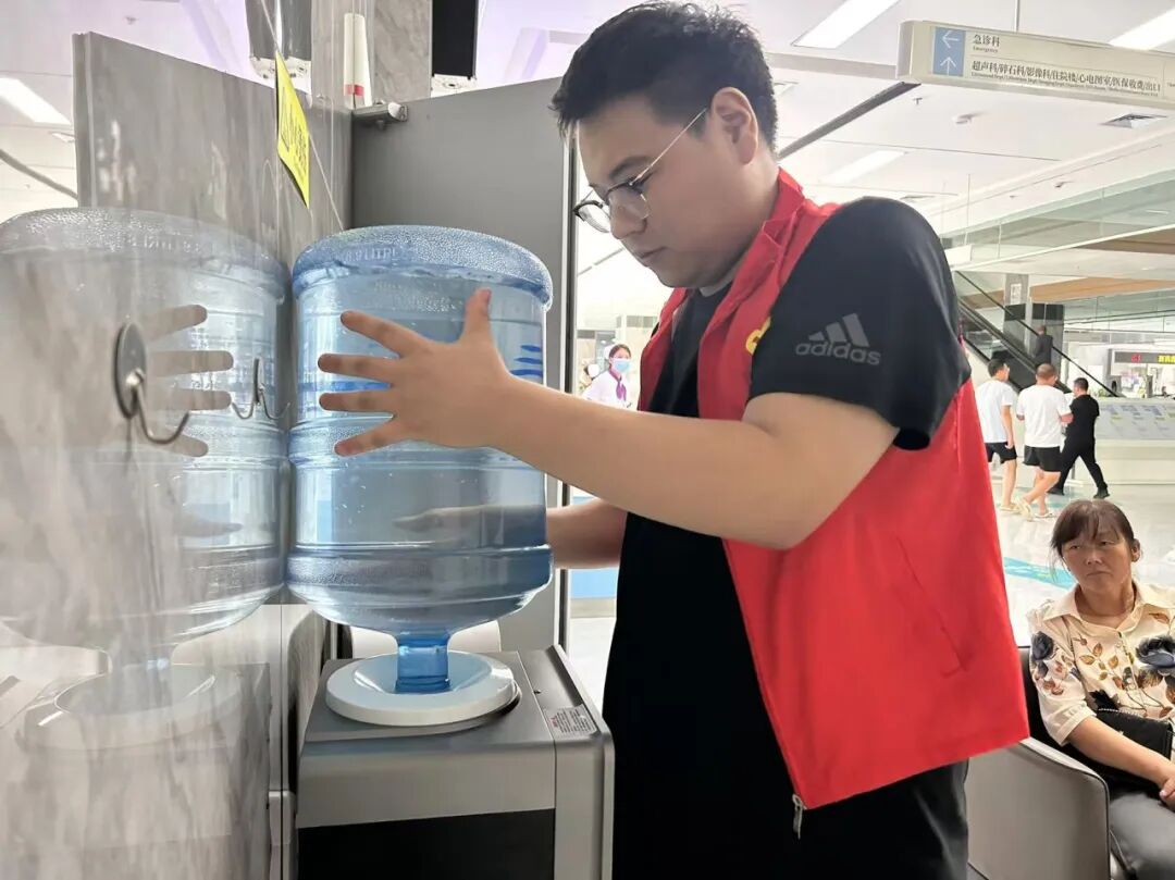 刘宇森和田佩宜作为首批响应号召的志愿者,经过门诊部工作流程培训后,带着对医学的向往与公益的热情踏入门诊大厅。面对繁琐需求,他们以“细致入微”为准则,让就医流程更顺畅、更有温度。一位老年患者感慨:“这穿红马甲的小伙子,咋这么好这么乖!我不会用手机,他们耐得烦,一步一步教,还搀着我做检查帮我拿药!”。