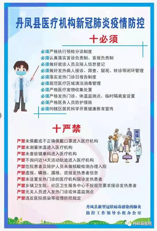 尊敬的患者及家属:您好! 随着春节的临近,聚集性活动增加;境外回国及农村外出务工人员、高校放假学生等返丹人员剧增;进口冷链食品和货物流量增加,以上因素使疫情防控压力进一步增大,防控形势严峻复杂。而近几日又是“三九”节气,正是是一年中最寒冷的时候,天气寒冷干燥,老人、小孩、呼吸道疾病患者等易感人群要做好个人防护。在此期间,当出现身体不适需要来医院就诊、住院的情况怎么办?在看病过程中如何保护自己?能陪护吗?结合广大市民的疑问,以及我院实际情况,现将来我院就诊有关注意事项告知如下:进入医院要求