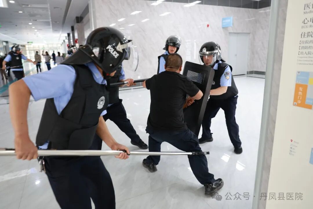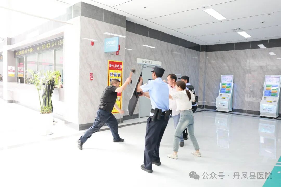 为进一步提升应对反恐防暴能力,保障广大群众及医务人员生命安全,5月31日,丹凤县医院联合县公安局巡特警大队共同开展反恐防暴应急演练。本次演练特邀丹凤县巡特警队教导员周鹏、商镇派出所所长李亚楠等同志现场进行专业指导。县医院党委书记刘文丹担任演练总指挥,副院长郝勇担任副总指挥,各职能科室及相关科室负责人现场观摩演练。