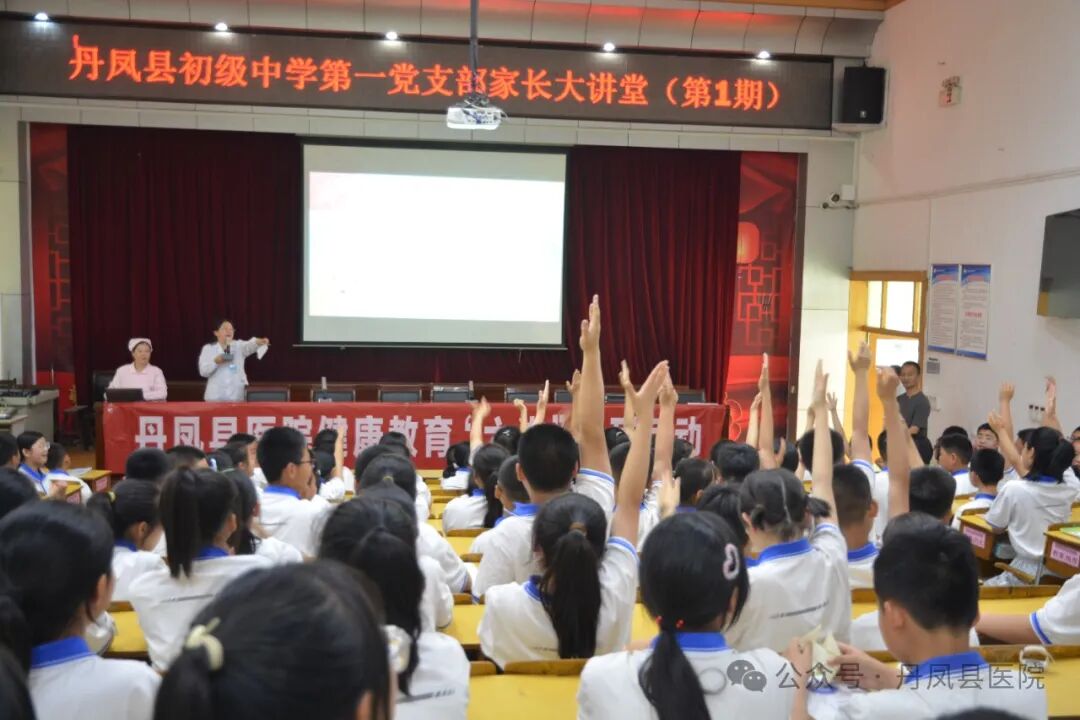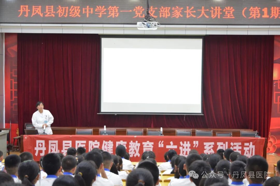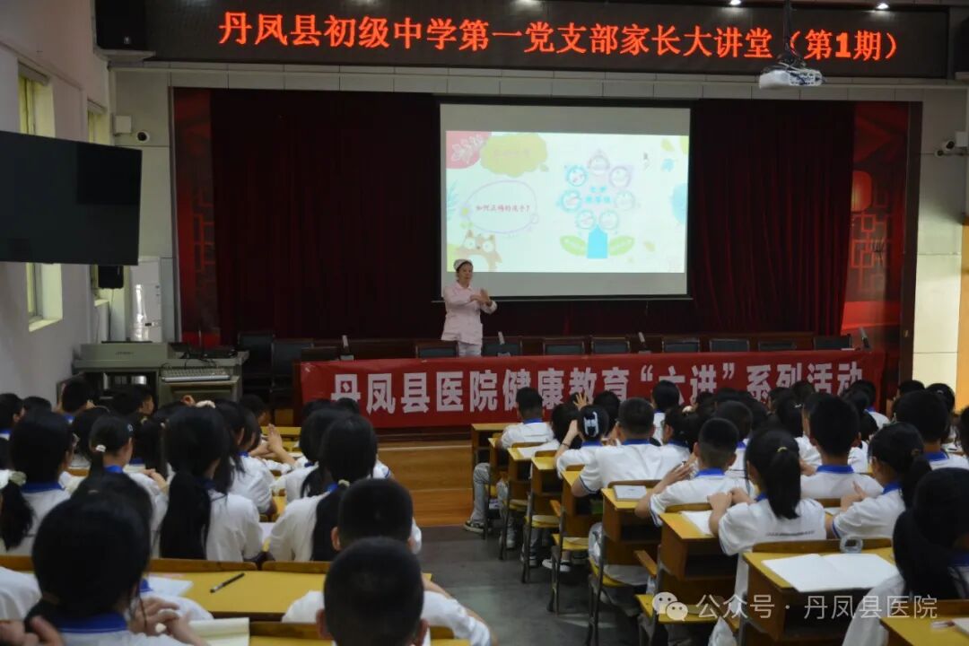 5月7日,丹凤县医院健康教育“六进”系列活动走进丹凤县初级中学,联合县初级中学第一党支部开展了第一期家长大讲堂。