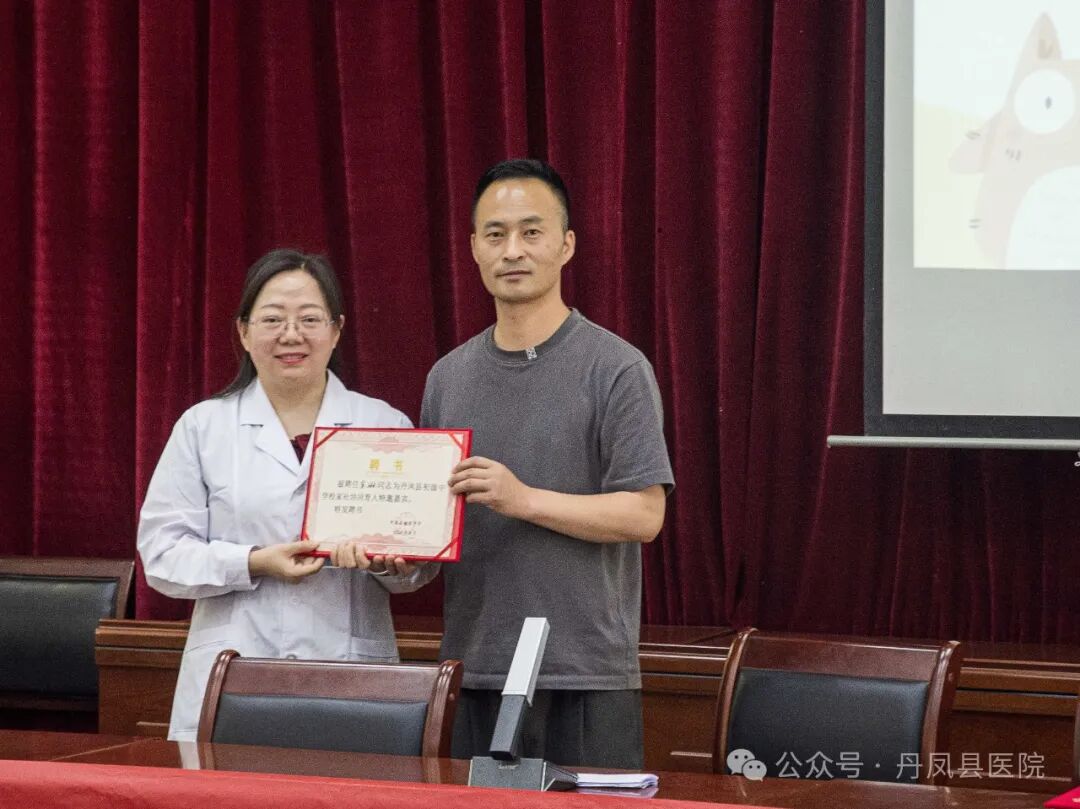 首先由丹凤县初级中学副校长王炜为南京“组团式”帮扶专家、丹凤县医院儿科主任薛春玲、丹凤县医院质控科科长宋琳颁发聘书。![]()