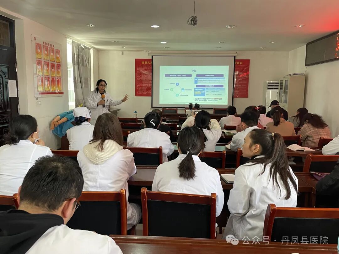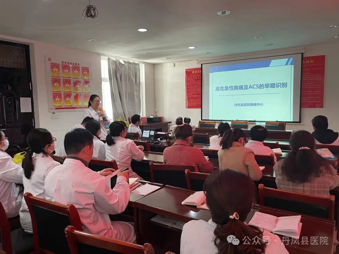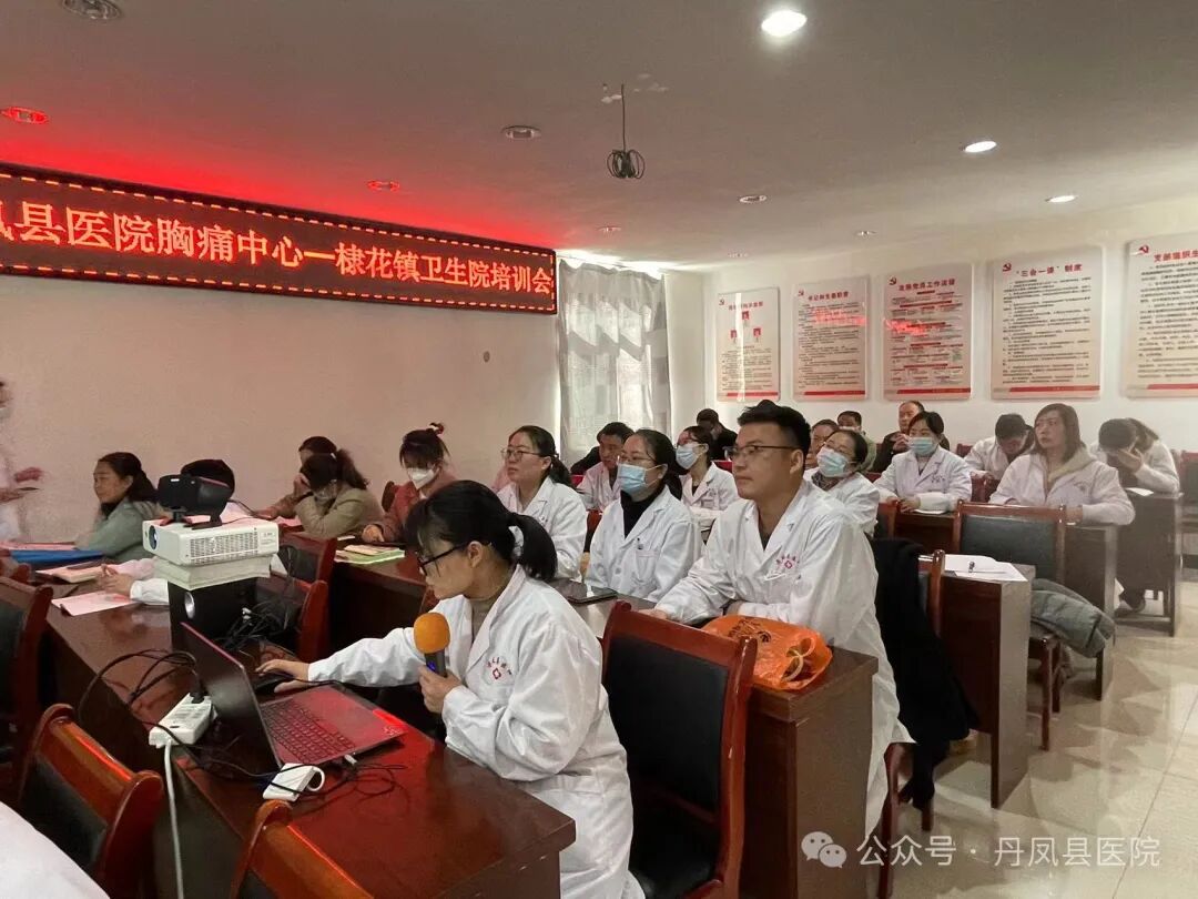 在卫生院门诊二楼会议室里,“组团式”医疗帮扶专家、丹凤县医院呼吸内分泌科主任李冬梅主任医师就《糖尿病的基层管理》相关知识对卫生院医护人员进行了培训;为提高基层医务人员对急性胸痛患者的识别、诊断及救治能力,早识别早治疗,胸痛中心安排心血管内科主任张文博、主治医师闵兰、张萍为现场医护、村医培训了急性胸痛相关知识,专家们声情并茂的授课使基层医务人员对糖尿病的基层管理及急性胸痛的早期临床诊断有了更加深入的认识。整个培训现场座无虚席,共30余名基层卫生人员接受了培训。![]()