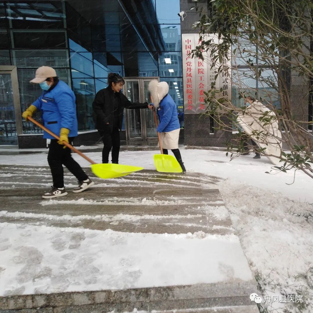 为确保院内环境的整洁和患者就诊安全,我院公安科科长赵晓东和总务科副科长陈涛带领公安科工作人员及院内护工开展扫雪除冰工作,为前来就诊的患者和家属开通“暖心通道”,确保“医”路畅通。
