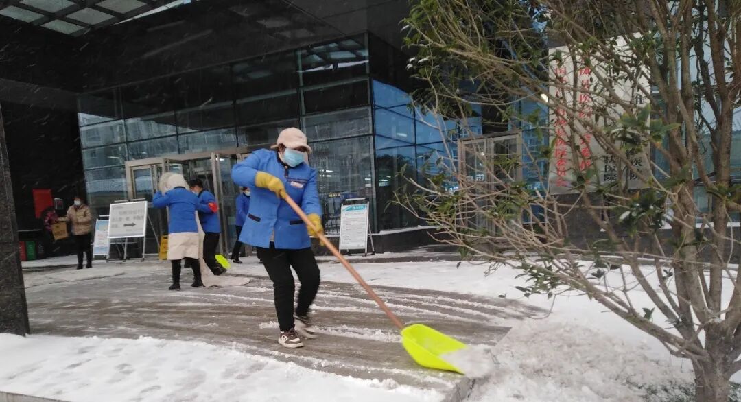 天气虽寒,人心向暖。凛冽的寒风、-7℃的低温、积雪成冰的路面......这一个个困难摆在大家面前,但却丝毫没有影响大家的劳动热情。为尽快铲雪除冰、消除隐患、确保患者及家属就诊安全,大家团结协作、不畏严寒、有序清理,各种清扫工具轮番上阵,扫的扫、铲的铲、撒盐的撒盐,铁铲与地面的摩擦声此起彼伏,大家忙碌的身影形成了一道亮丽的风景线。