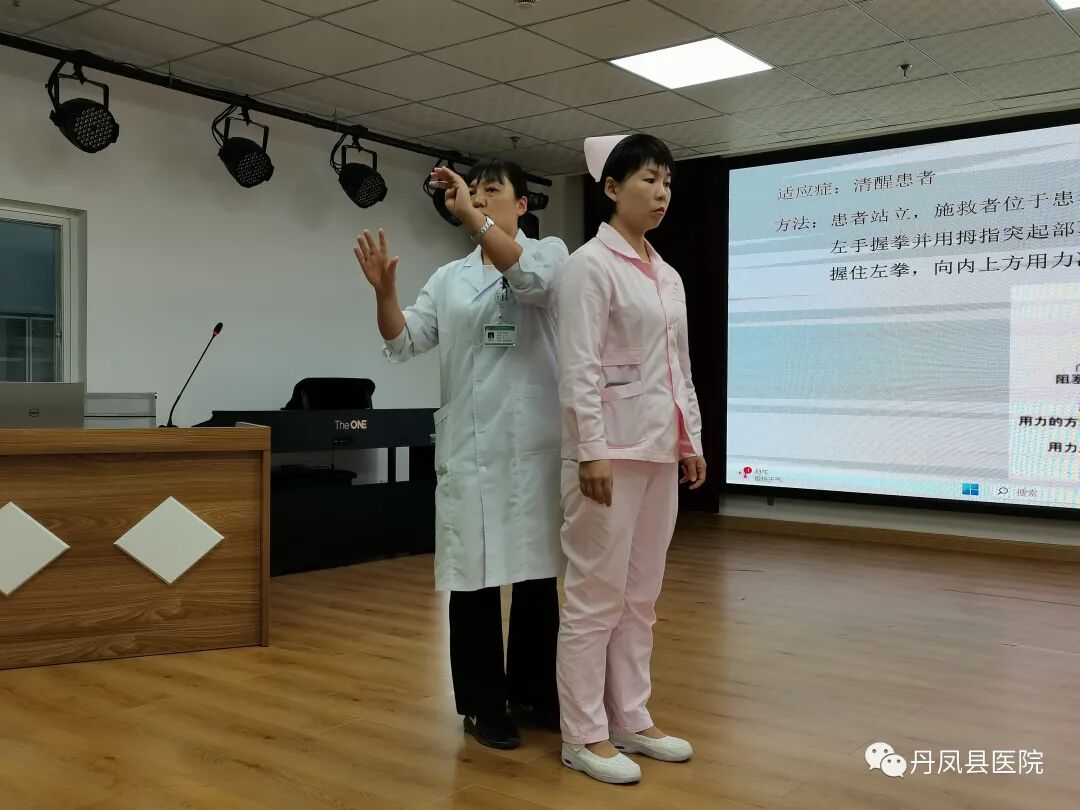 在活动现场,首先由南京“组团式”帮扶医疗队队员、丹凤县医院儿科主任薛春玲主任给家长们讲解异物堵塞的急救方法—海姆立克急救方法。她从立位腹部冲击法、卧位腹部冲击法、婴幼儿手法、海姆立克自救法四个不同的方面详细讲解了这一急救方法,以及其适应症及注意事项,并给在座的老师及家长做了规范的示范,让他们在遇见意外发生时能够及时准确的实施救治,守护孩子们的生命安全,提高家长们及老师们的急救意识及能力。![]()