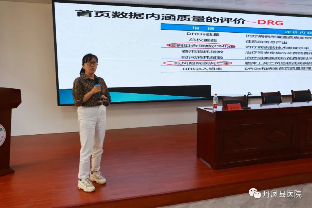为全面贯彻落实国家医疗保障局《关于印发DRG/DIP 支付方式改革三年行动计划的通知》,继续深化DIP付费改革,持续推进DIP政策下医院精细化运营管理,助推医院高质量发展,提升人民群众就医满意度,8月30日下午,丹凤县医院在新院区四楼会议室召开了DIP支付方式改革工作推进暨业务培训会。医院职能部门负责、各临床、医技科室主任、护士长、病案室全体人员及当天不值班的所有临床医护人员参会,会议由副院长靳妙主持。![]()