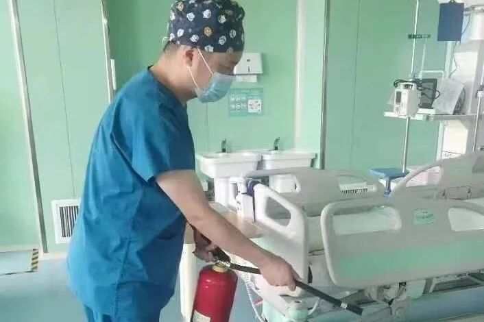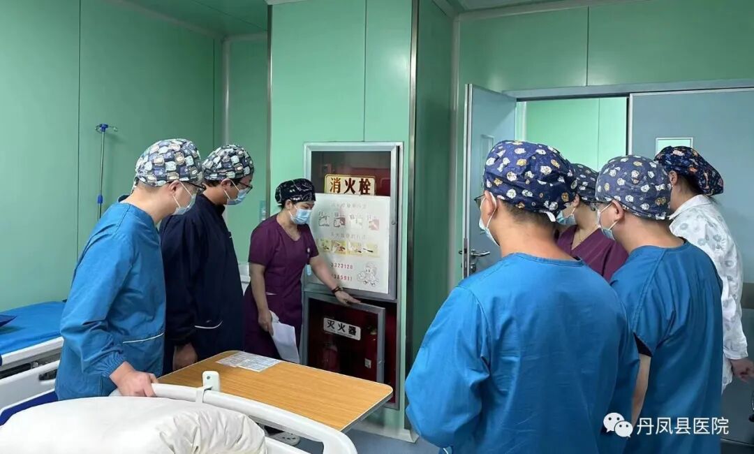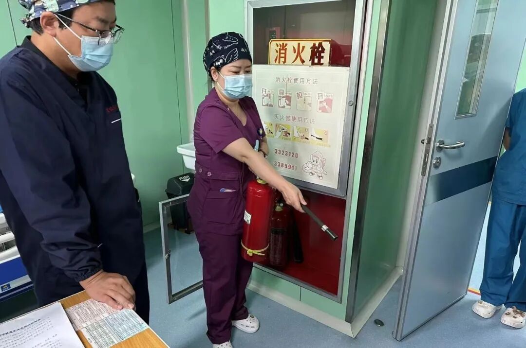 在公安科的指导下,医务科副科长王强和重症医学科护士长董萍组织科室全体医护集体学习了火灾应急预案流程,火灾发生时怎样逃生、疏散病患及如何组织扑救初起火灾等,并现场示教灭火器、室内消火栓的检查和使用方法,熟悉逃生通道的位置。![]()