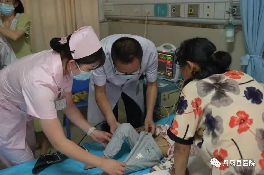 此时,院党委书记刘文丹,党委副书记、常务副院长樊书满已经在现场等待并指挥此次急救工作。在院等候的南京“组团式”帮扶医疗队队员、南京市儿童医院急诊科副主任医师、丹凤县医院儿科主任薛春玲,医务科副科长王强,急诊科主任周书宝等儿科、重症、急诊多学科救治团队对孩子进行了全面检查与评估,共同会诊、制定救治方案、给予相应检查、治疗,稍后转入儿科病房。期间,急诊科护士长张宁、儿科护士长赵章敏全程陪同。![]()