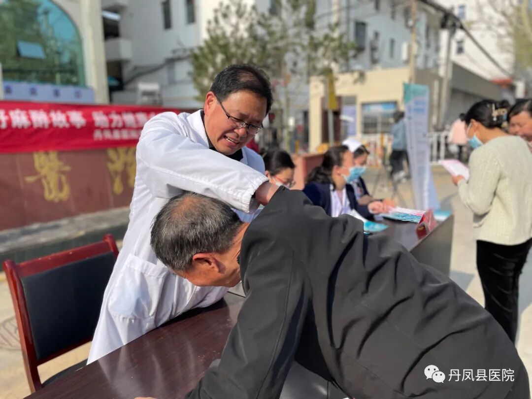本次活动由内科、外科、骨科、妇产科、疼痛科、手术麻醉科派出专家组成义诊团队,为广大群众进行健康教育咨询、体格检查、测量血压。