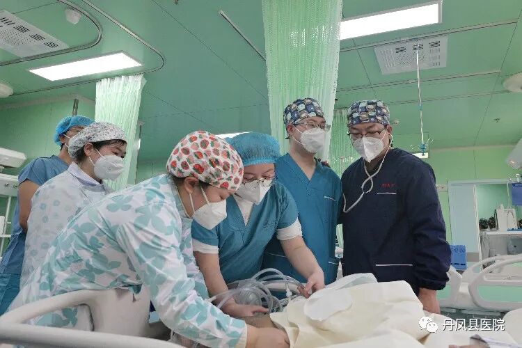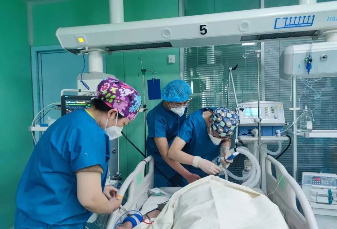 “王科长,快来!刚入室的5床,无创正压通气下指脉氧合指数仍持续下降!需紧急抢救!”在病房反复巡视的潘双主治医师第一时间发现情况。心电监护仪屏幕上,重度呼吸衰竭的5床患者快速房颤,心率170次/分,指脉氧合指数正迅速下降80、70、60、50、40…不到1分钟患者已意识模糊,颜面口唇发绀。“立即气管插管!”随着王强副主任医师一声令下,大家跑动了起来,刘浪浪医师、赵于喆医师手持支气管镜迅速来到患者床头,董萍护士长立即准备好所有材料和李想护士连接呼吸机管路,潘双医师、刘安伟医师调整呼吸机参数,插管、吸痰、接呼吸机…三下五除二,患者气管插管完成,在呼吸机支持下,患者的指脉氧合从40、50上升到了90、100,看着患者逐渐红润的脸颊和口唇,青紫冰冷的手脚恢复了温暖,大家都松了一口气。为了保证患者的后续用药和生命支持,潘双医师和王双锋医师继续又给患者进行深静脉置管…这边手头才刚忙完,护士站又呼叫“值班医生,快来看一下1床!……”这些,只是丹凤县医院重症医学科日常工作的一个剪影。![]()