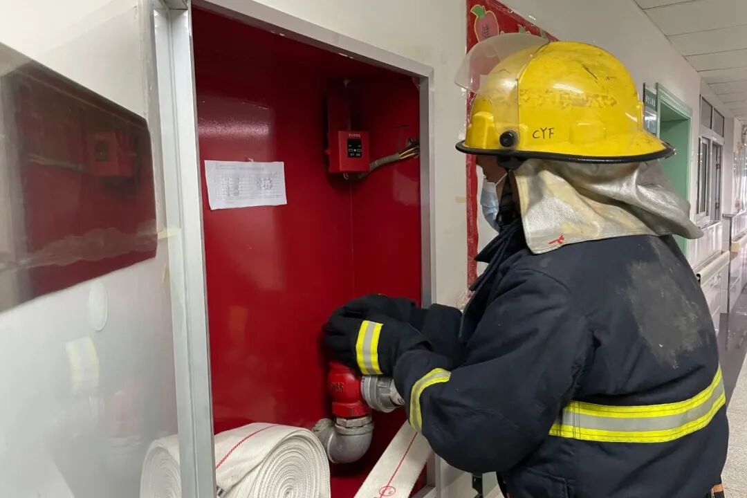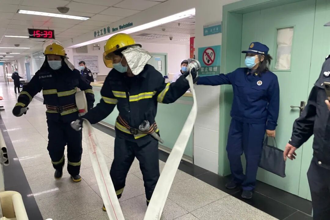 警报声响起,科主任、护士长迅速组织科内人员逃生,楼梯口的疏导人员协助指导有序撤离到安全地带。公安科及时派出有灭火经验、救援技巧的工作人员迅速奔赴火灾现场实施灭火作业,工作人员拧开消防栓,抽出消防水带,实施喷水灭火。![]()