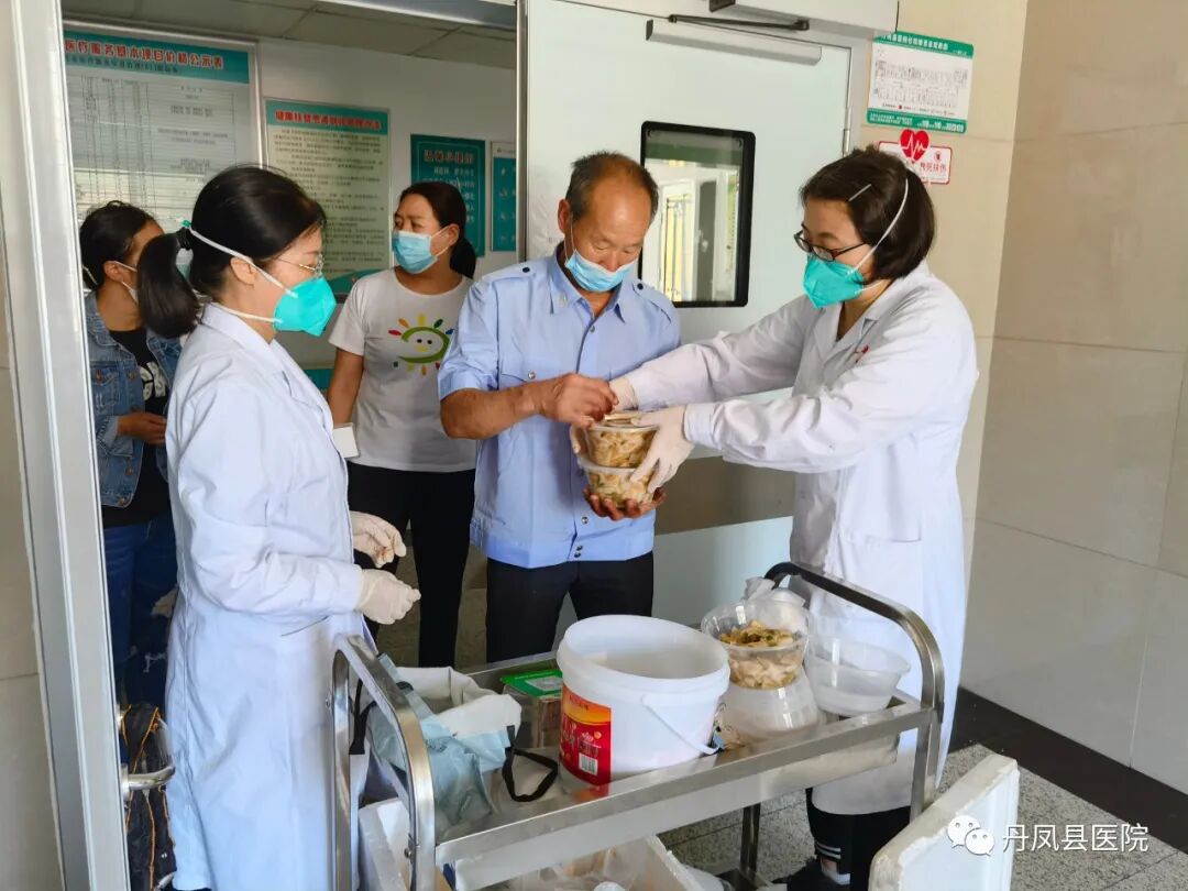 后勤保障人员把一日三餐送到患者手中,