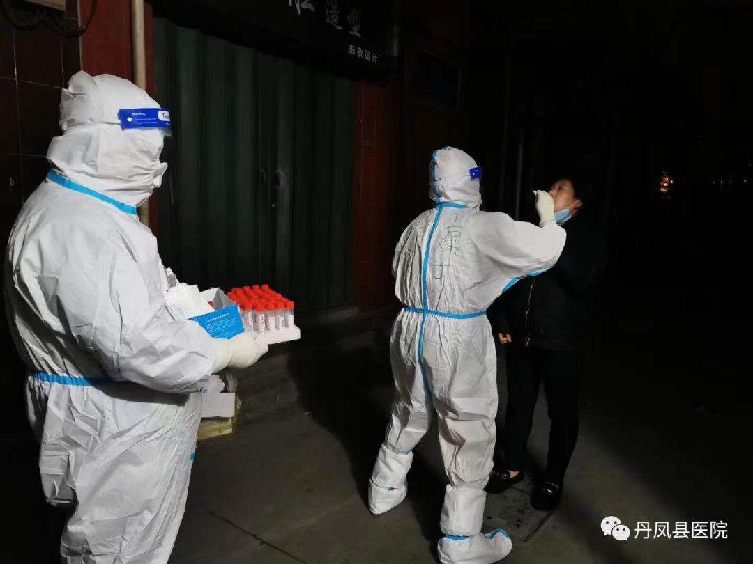 12月30日当天,15名队员在雁塔区曹家堡小区采集核酸标本10500份;31日在联盟新城和欧亚学院采集核酸标本10800份直到晚 9点才收工。