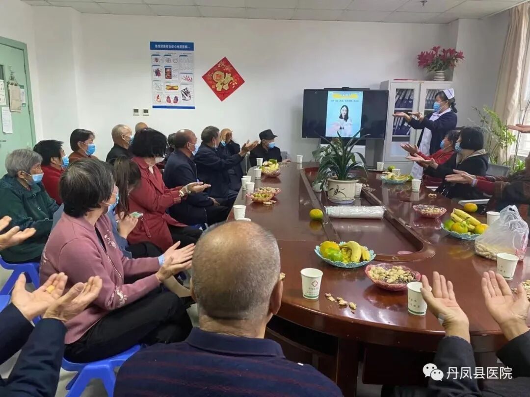 内三科在医生办公室举行医护患茶话会,科室彭丹亚主任,张文博主任为患者进行健康宣教,讲解秋季养生知识及新冠防控知识,现场为患者答疑解惑,美小护们通过PPT的形式为大家分享重阳节的由来及意义,现场带领大家做手指保健操,并鼓励患者为大家分享自身的健康管理小秘诀,现场气氛热烈,赞誉不绝。
