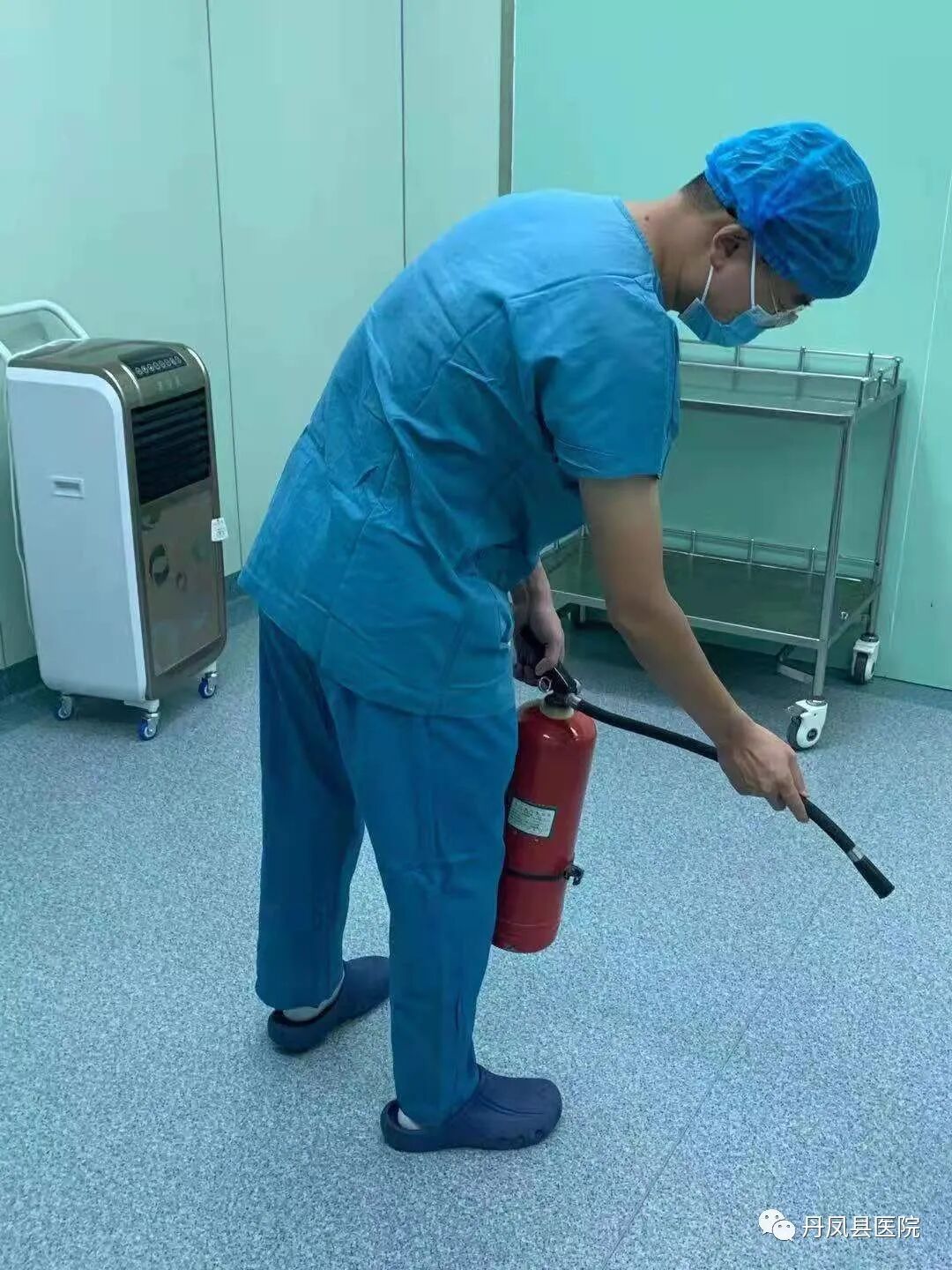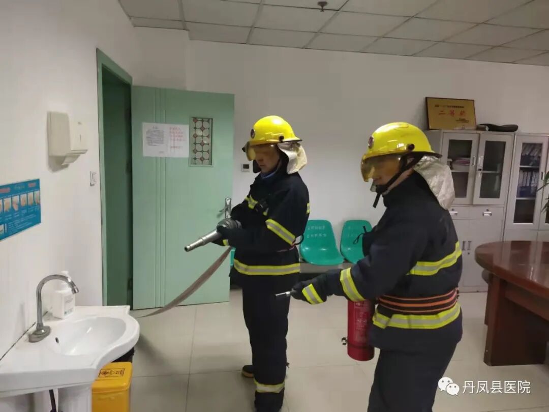 公安科全体人员首先对全院高位水箱、水房、消防控制室等重要部位进行消防安全检查;其次对消防服的正确穿戴及消防器材的正确使用方法进行培训;最后对人员紧急疏散及初起火灾的扑救进行演练。