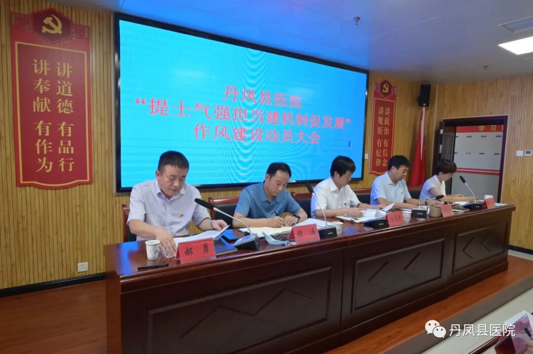 会议由党委副书记、院长樊书满主持。党委委员、纪委书记郝勇领学《中共丹凤县医院委员会关于印发丹凤县医院“提士气强担当建机制促发展”作风建设实施方案的通知》文件。党委委员、副院长程涛宣读县纪委、县委组织部《关于近期干部作风建设及营商环境有关问题的通报》文件,副院长靳妙通报近期我院违反作风建设的问题。党委书记刘文丹作了动员讲话,并指出:一要充分认识作风建设的重要性和必要性;二要找准问题,瞄准靶心,增强抓好作风建设的责任感;三要从严整改、健全机制,促进作风建设走向深入;四要统筹兼顾,全面抓好医院各项工作。要求全院各科室要以优质高效的服务和严谨务实的作风,推动各项工作从严从实、高质量发展,确保“提士气 强担当 建机制 促发展”作风建设工作在我院取得实效。樊书满同志就如何贯彻落实这次会议精神,认真完成作风建设各项工作任务提出了以下四点要求:一是要求各支部、各科室要统一思想,迅速传达会议精神;二是要健全制度,制定切实可行的方案;三是要抓好整改,确保作风建设落到实处,四是要紧扣年度目标,确保全面或超额完成全年各项工作目标和任务。![]()