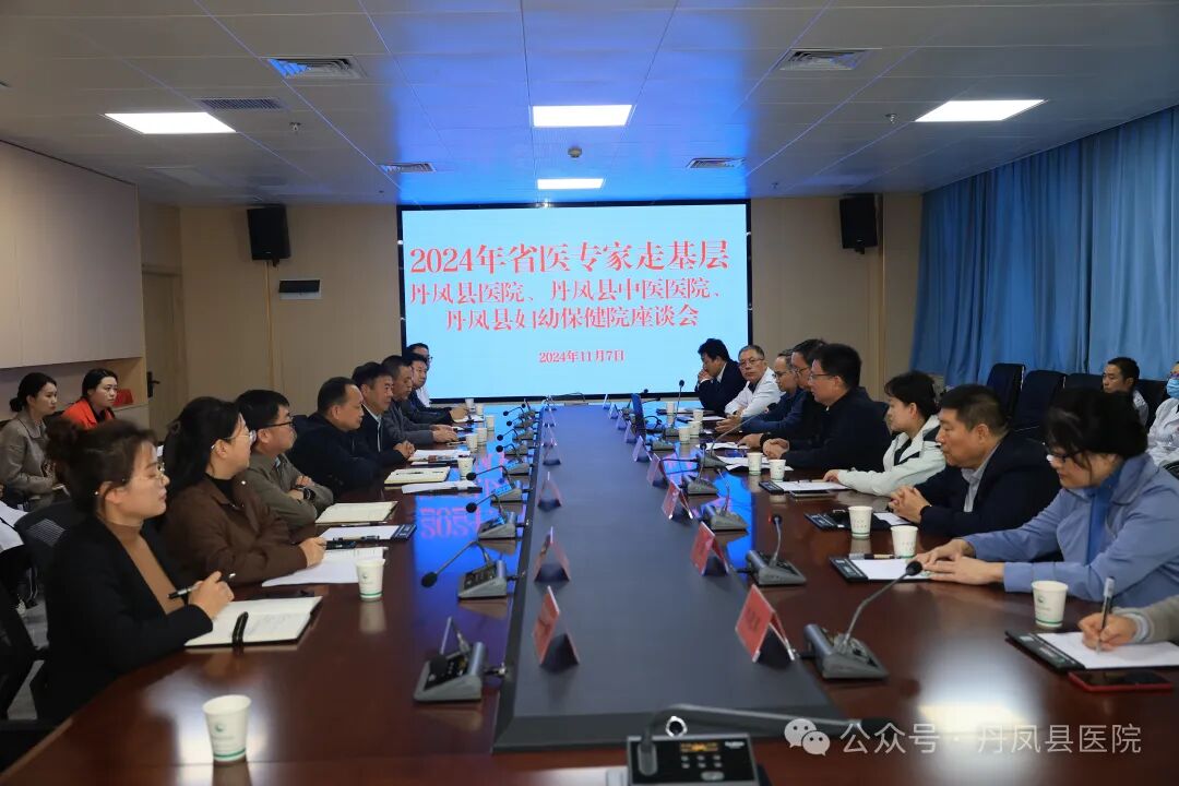 上午八点,在丹凤县医院行政楼三楼多媒体会议室召开座谈会,省医院专家一行,县卫健局副局长张杰、县医院党委副书记、常务副院长樊书满、县中医院院长张野、县妇幼保健院院长李仓本及县医院相关科室人员共三十余人参会。![]()