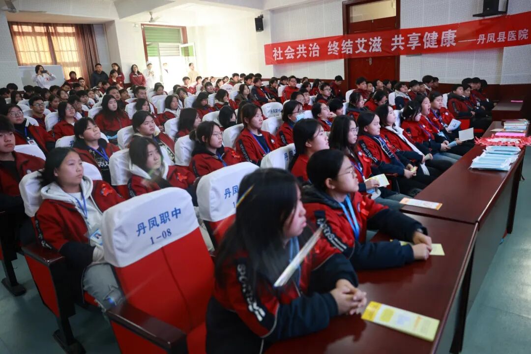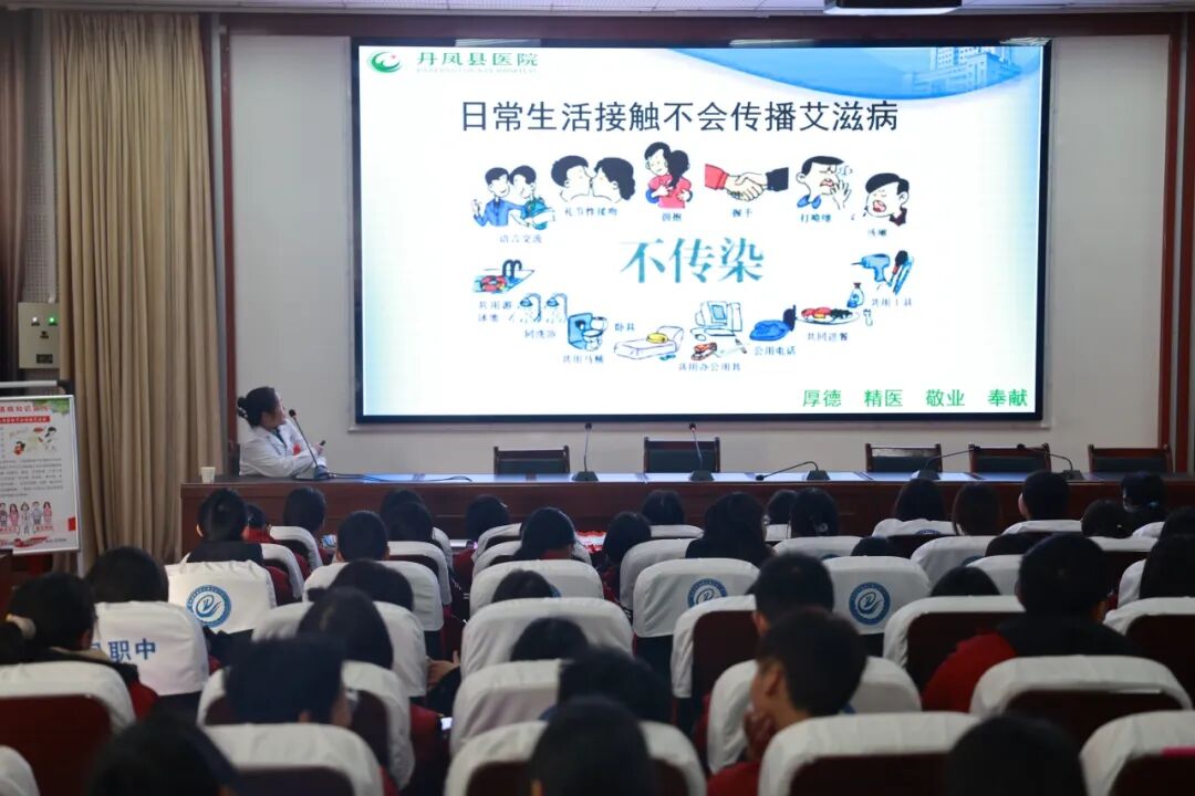 为进?步加强预防艾滋病防治知识宣传,提?全?防艾意识。近?,丹凤县医院组织医务?员?进县职教中心以及社区,开展以“社会共治,终结艾滋,共享健康”为主题的艾滋病防治知识宣传活动。