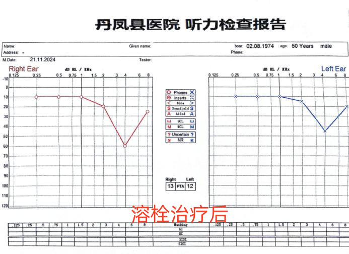 谢小强主任详细查看病人,以专业的素养和果断的决策,立即制定溶栓治疗方案,经患者及家属知情同意后,于下午6时进行溶栓治疗,溶栓治疗结束后患者即感右侧耳鸣耳聋慢慢好转,当日晚11时许患者自觉耳鸣耳聋情况完全消失,次日早晨复查听力右耳听力完全恢复正常,言语听阈为13分贝,在正常范围内,基本与左耳持平,治疗效果超出预期。