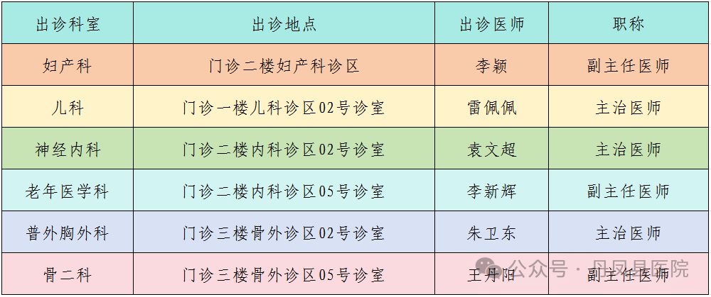 【周末门诊】丹凤县医院10月19日下午、10月20日门诊排班表来啦~