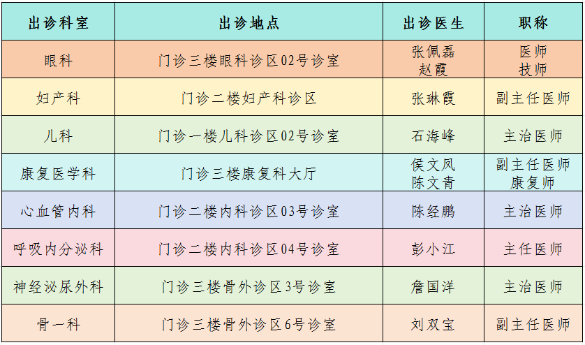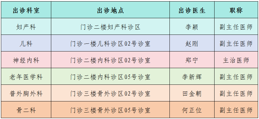如医生有临时变动请以当天实际出诊医生为准出诊时间