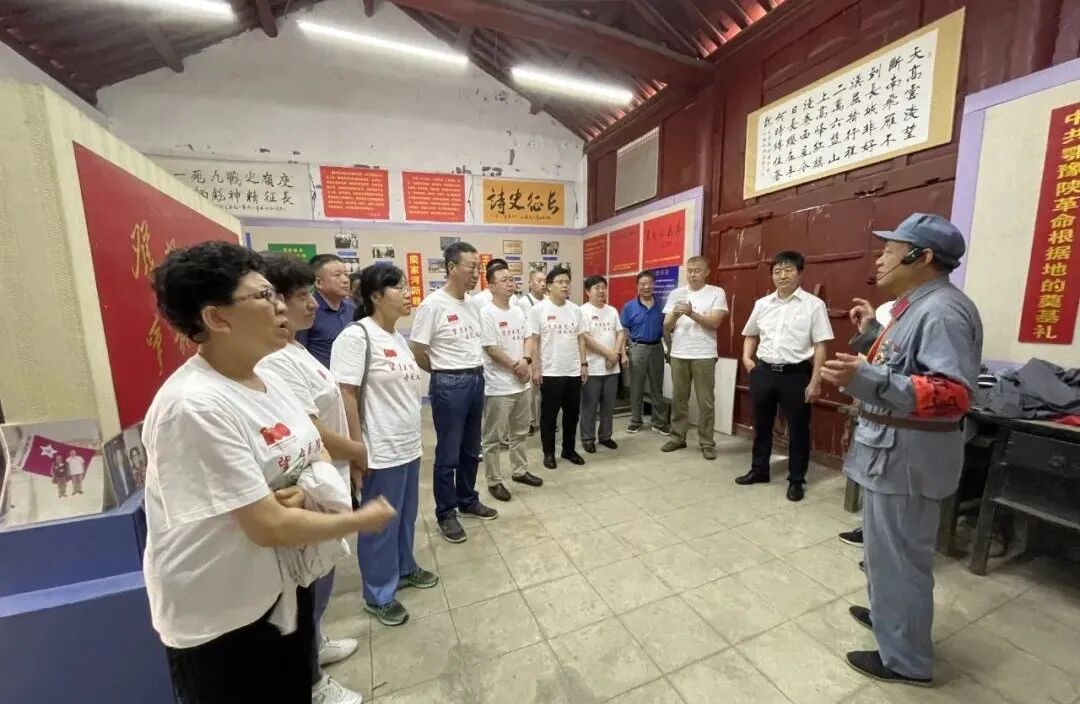 我院党委及望京医院党委一行先后参观了庾家河战斗遗址和中共鄂豫皖省委第十八次常委会议(红二十五军军部)旧址,一身红装的革命传人杨青山老人向大家介绍了鄂豫陕革命根据地的创建历程、红二十五军将士们浴血奋战的壮烈场景,演唱了自己编写的红色歌曲《红军战士为了谁》,并向大家讲述了庾家河会议召开的始末以及程子华、徐海东等老一辈革命家可歌可泣的英雄事迹,号召大家继承先烈遗志,传承发扬红色精神。在庾家河战斗纪念碑前,全体人员向革命烈士献上鲜花,并且三鞠躬,以表示对革命先烈的崇敬之心与缅怀之情。