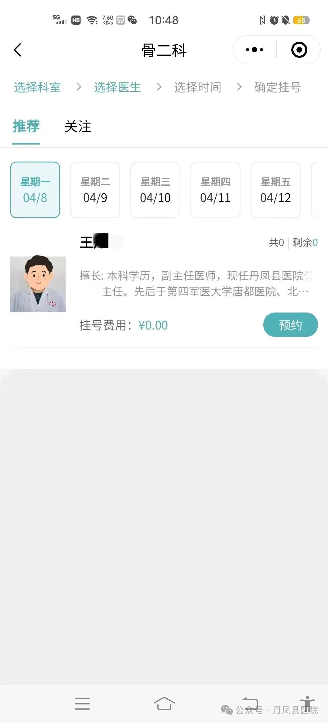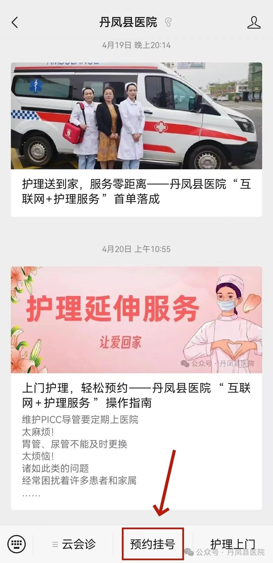 第一步:进入“丹凤县医院”公众号预约挂号:
