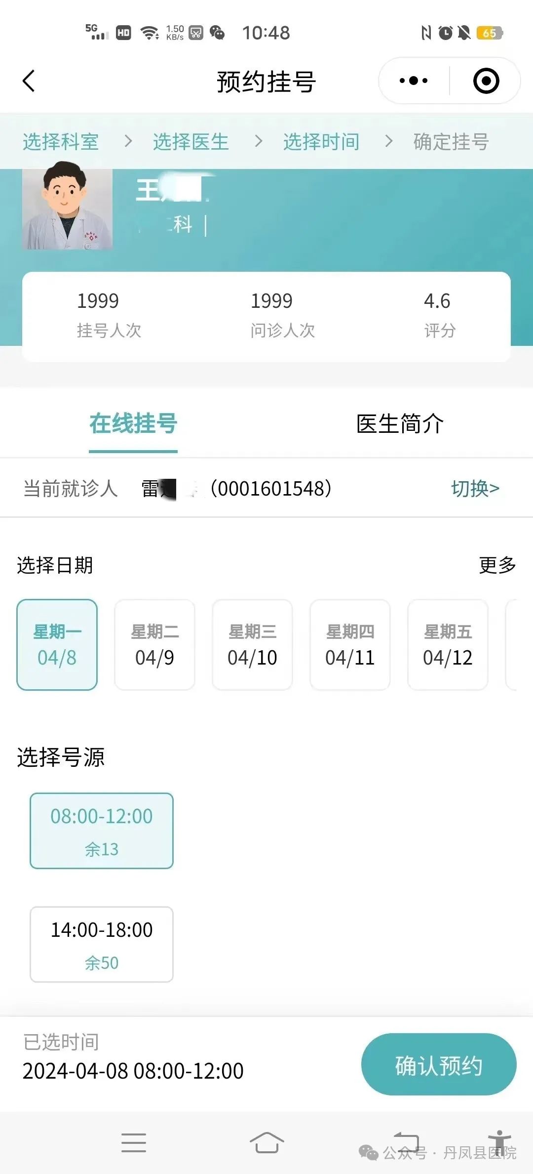 第六步:查看医生详细信息,并选择就诊日期和就诊时间,点击【确认预约】